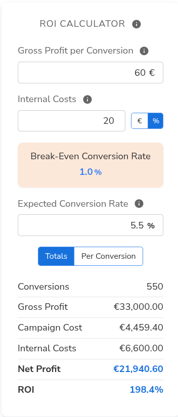 So sieht der ROI-Rechner aus: